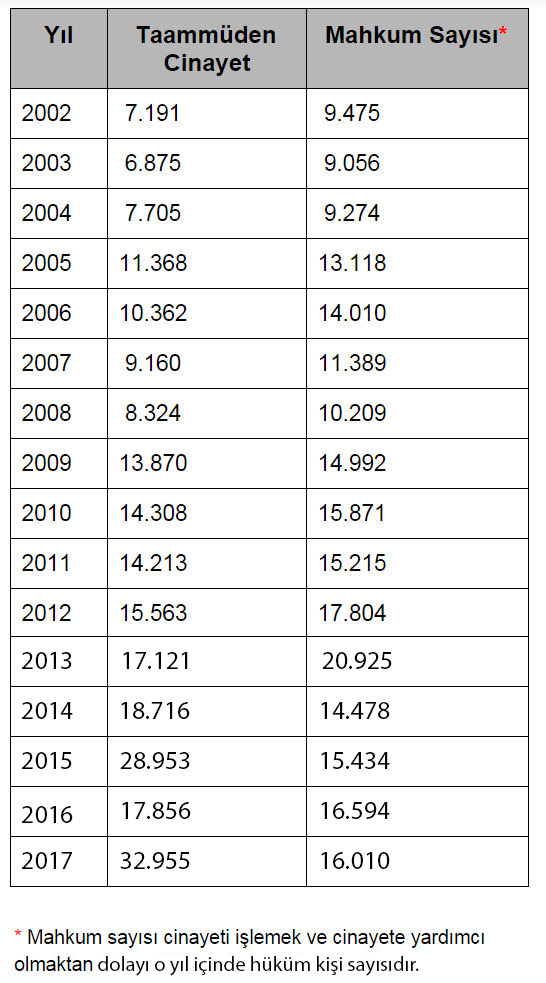 İşte AKP'nin direksiyonu devraldığı 2002 yılından başlayarak 2017 yılına kadar işlenen cinayet sayıları... 2002 yılı rakamları büyük ölçüde henüz AKP hükümeti kurulmadan önce işlenen cinayetleri yansıtmaktadır. Görüleceği gibi yeni Türkiye'de kan yok, kardeşlik var... İnanın bunların derdi başka...