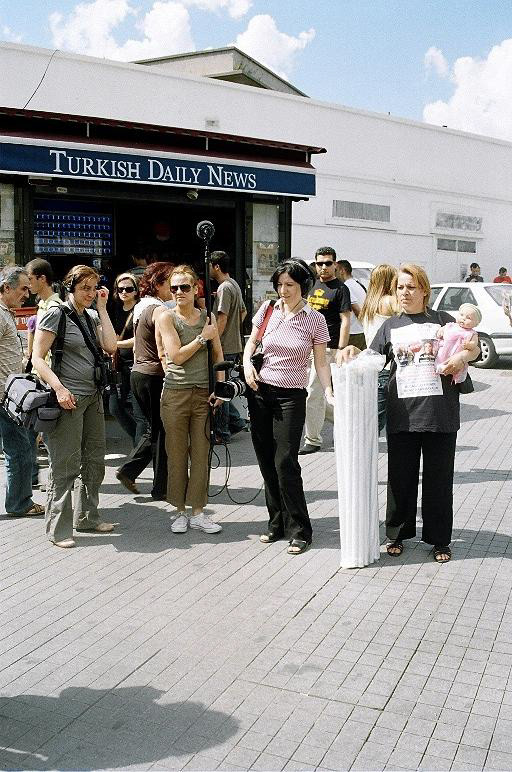 Neyse, 2007’ye gelene kadar epey badire atlattık ama aradan geçen 12 yılda elime ilk kez fotoğraf makinesi alıyorum. İlk durak doğal olarak Taksim. 22 Temmuz’da yapılacak genel seçimler öncesi bağımsız aday Ayşe Tükrükçü seçim çalışması yapıyor. İki fotoğraf çektim. Duraklamadan devam ettim. Sonuçta seçim meçim beni ilgilendirmiyor. Ama görün ki o günden geriye “belgesel” değeri namına sadece bu iki fotoğraf kaldı. Fotoğraf üstüne kendime çok gecikmiş bir ders vereyim o halde: Ne çekeceğini bilmiyorsan, yani kafanda belirli bir hikaye, belirli bir plan, belirli bir kurgu yoksa kendi gündemlerini unut. Senin gündeminin dışında da olsa ülke ya da şehir gündeminde yer eden herhangi bir şeyi belgelemek daha yararlı olabilir.