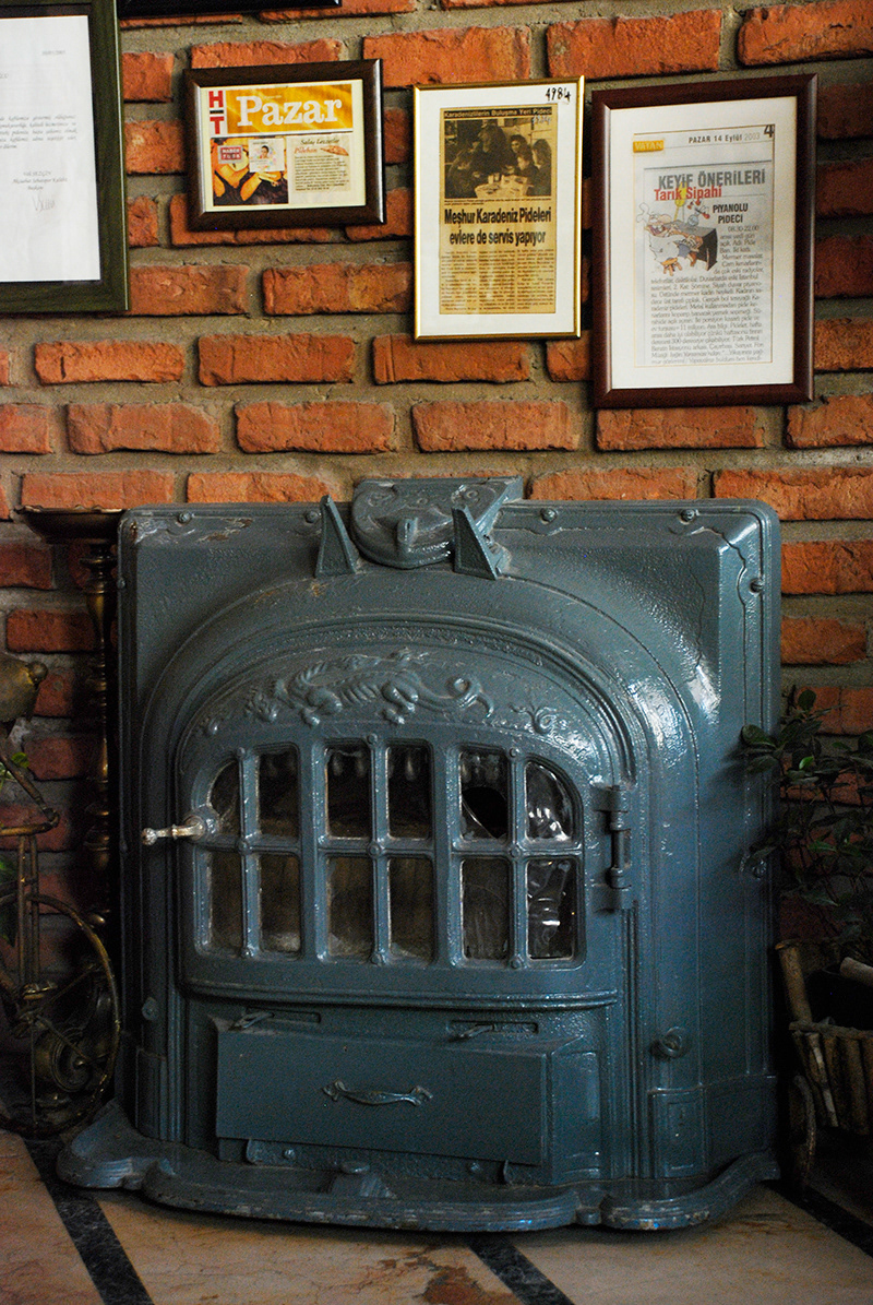 Pideban’ın ilk dükkanı çayırbaşında, benzinliğin arkasında… Diğer iki şube daha modern ama Pideban’ı Pideban yapan her şey fazlasıyla Çayırbaşında mevcut… Özellikle Pazar günleri çok kalabalık oluyor. Yazın okullar kapandıktan sonra pek iş olmuyor. Aynı anda 3-5 ünlüyle karşılaşmanızın mümkün olduğu bir mekan olduğunu da belitelim. Bunun başta gelen sebeplerinden biri de işletmenin rahatlığı ve sıcaklığı… Mesela müşteriler arıyormuş Antalya’dan, “senin pide gibi değil burdakiler” diye… Bodrumdan Korkmaz abi, arka masada pidebandan bahsettikleri için arıyor Yusuf beyi. O kadar sıcak bir aile ortamı var ki, ünlü birisini kasa başında görmek mümkün olabiliyor. Şayet bir gün draje ekibinden birisini kasada veya sipariş alırken görürseniz şaşırmayınız… Antika meraklarının kökeni ise bundan 30-40 sene önce kurulan bitpazarı. Aslında ilk eski radyolarını memleketten getirirler. Dedelerinin eski radyosunu getirdikten sonra, o dönem televizyonun da etkisiyle radyolara ilgi azalır. İnsanlar eski radyolarını buraya getirmeye başlarlar. Bu dönemin ardından hesap makineleri ve telefonlar gelmeye başlar. Birçok çeşit antikaları var, eskiden tavandan kömürlü ütüler sarkarmış fakat şimdi onları daha güvenli bir yere taşımışlar.