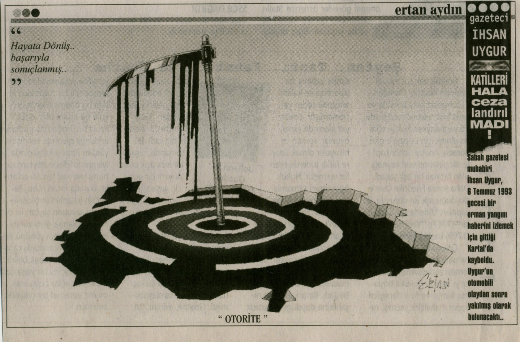 Dirà, per esempio: era il 19 dicembre… Erano le quattro del mattino… Faceva freddo… Molto freddo… Un freddo d'inverno, un freddo di neve, un freddo di cemento… Nelle carceri, centoventi e rotte persone erano in sciopero della fame fino alla morte, centinaia erano in sciopero della fame… Quelli nel "digiuno fino alla morte" erano al sessantunesimo giorno… Tutti erano molto preoccupati per loro. Tutti erano molto, ma molto DISPIACIUTI per loro. Ad esempio, Gülay Göktürk quasi supplicava il Gentiluomo Hikmet Sami Türk affinché questi bambini manipolati venissero salvati dalle organizzazioni e trasferiti nei tipi F appena completati. Ad esempio, Emin Çölaşan pregava affinché questi bambini avessero le loro "stanze" dove avrebbero potuto pensare con la propria testa ed essere trattati come esseri umani… Ad esempio, Tuncay Özkan era andato a vedere di persona e aveva mostrato a tutto il mondo quelle prigioni tipo hotel a cinque stelle con i fiori alle finestre… Se mesi prima aveva scritto che "il tipo F è l'unica soluzione per i problemi giudiziari", doveva pur sapere qualcosa… Ad esempio, Hürriyet e Yeni Şafak erano della stessa idea su questi temi. Ad esempio, Cumhuriyet e Zaman urlavano in coro, a braccetto, affinché quei bambini venissero salvati da se stessi… Ad esempio, Hikmet Çetinkaya di Cumhuriyet diceva "ma che scherziamo" riguardo alle richieste di "abolizione dei Tribunali per la Sicurezza dello Stato (DGM) e dell'articolo 16 della Legge Antiterrorismo (TMK)".